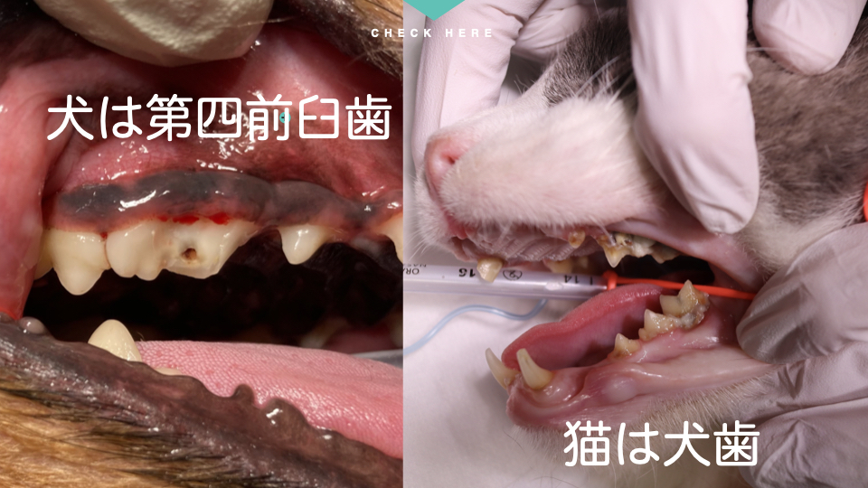 まとめると犬は奥歯(第四前臼歯)、猫は牙(犬歯)が折れやすいということになります。