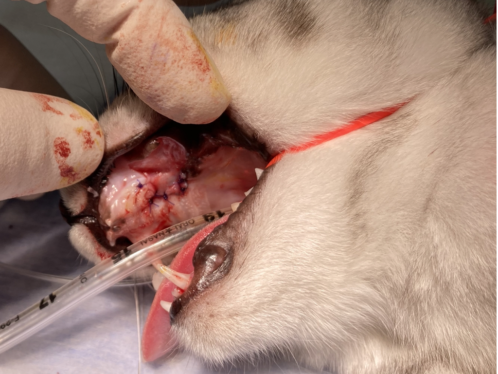 この穴は鼻腔に達していて、食事や飲水のたびにくしゃみや鼻水などの症状に悩まされているとのことでした。