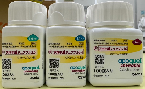 アポキル(成分はオクラシチニブ)とは、犬のアトピー性皮膚炎のかゆみの緩和を目的に認可されている動物薬です。