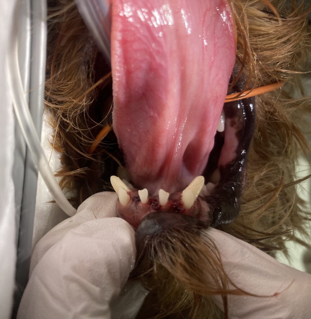 この時点で、全ての切歯を抜いてしまう治療方法も適応になるのですが、「歯をなるべく残してあげたい」という飼い主様の強いご希望と、