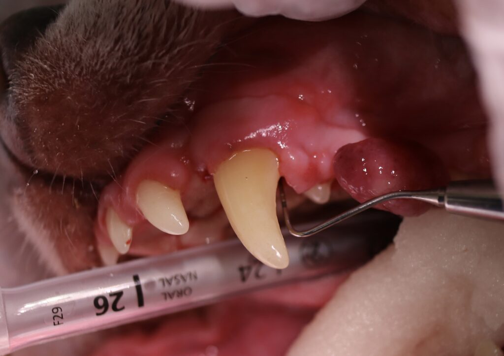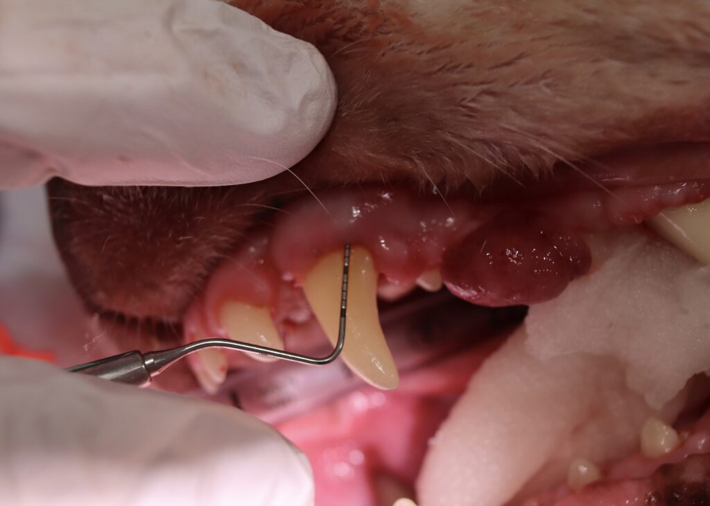 犬歯の裏側はこのように肉眼的にもわかるくらい歯周ポケットが広がっていました。