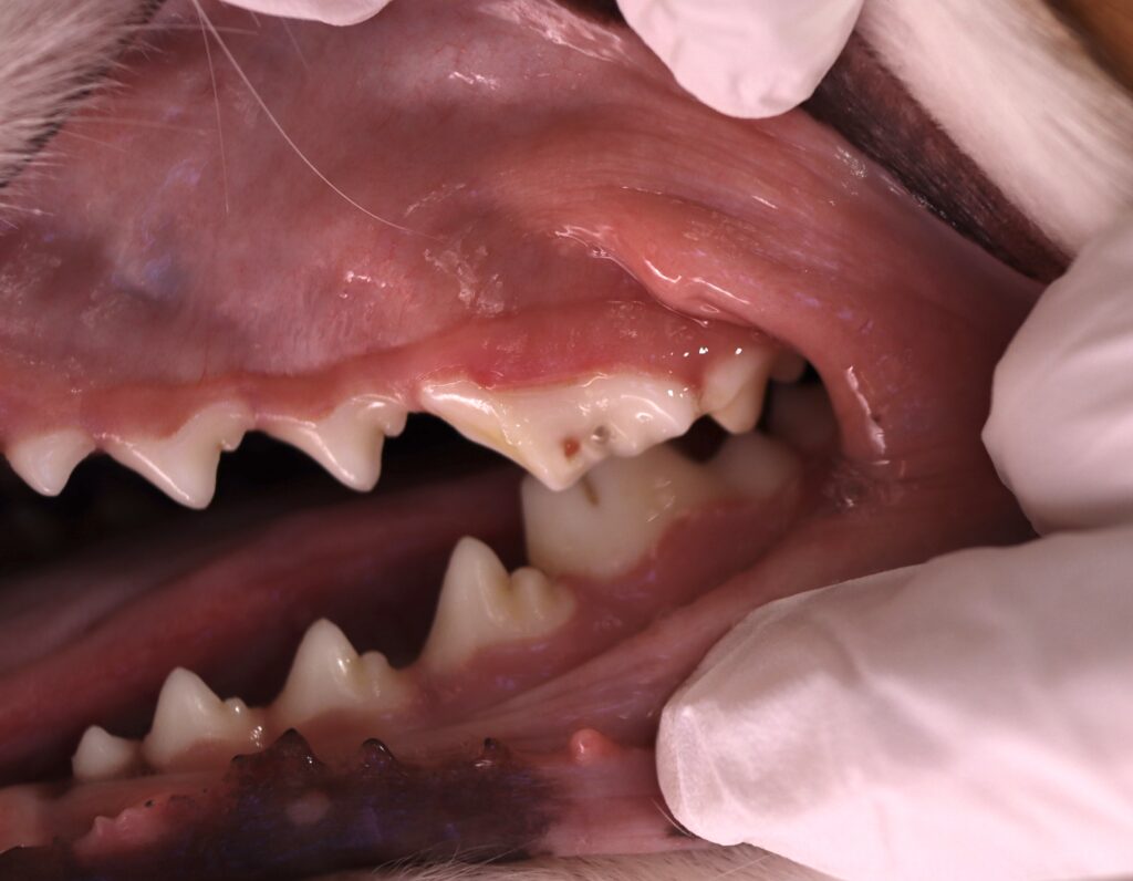 日頃硬いものを噛む習慣があるワンちゃんは第四前臼歯(奥歯)が非常に折れやすいため、毎日の確認がとても大切です。