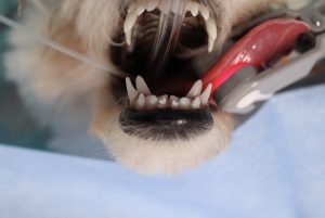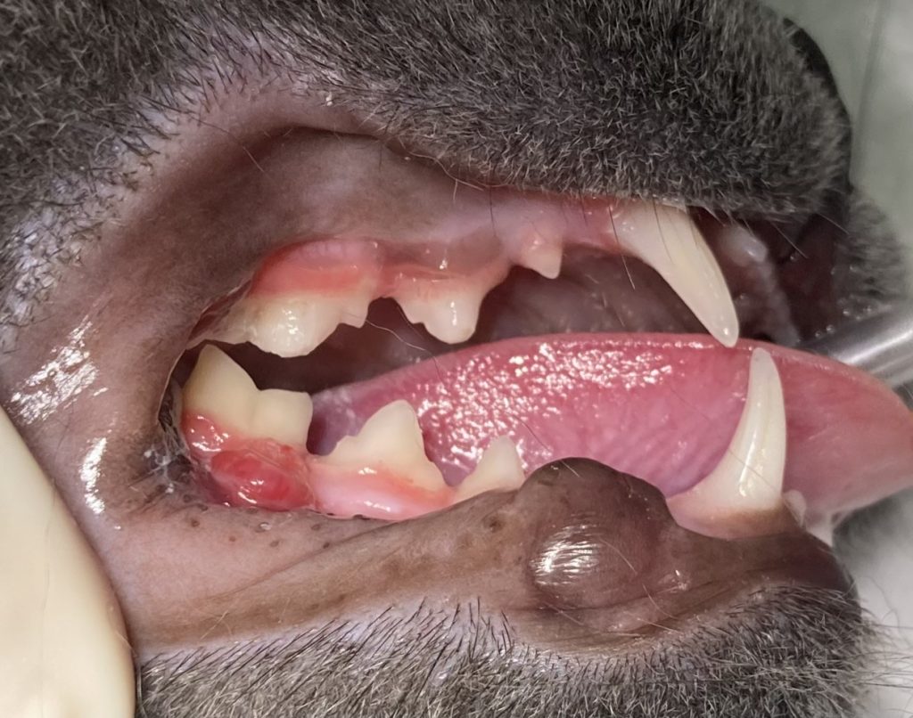 この子は年齢が若く、不妊手術で麻酔をかけるにあたって上顎臼歯の歯冠切除を行いました。
