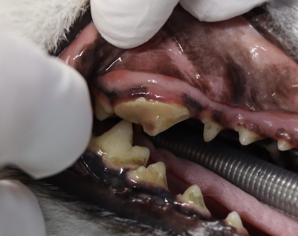 日頃硬いものを噛む習慣があるワンちゃんは第四前臼歯(奥歯)が非常に折れやすいため、毎日の確認がとても大切です。