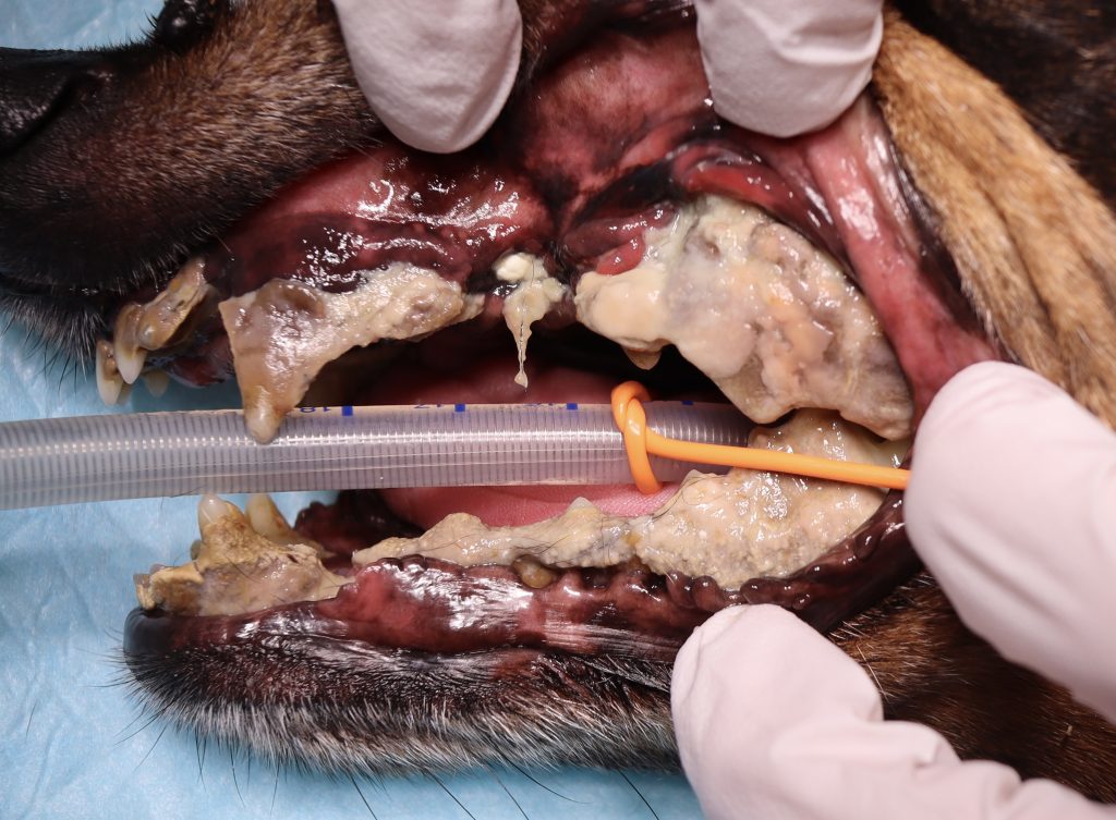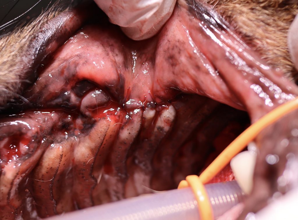 内科的治療で体調が回復したことを確認し、すぐに全身麻酔下での精査と歯科処置、歯石除去を行いました。