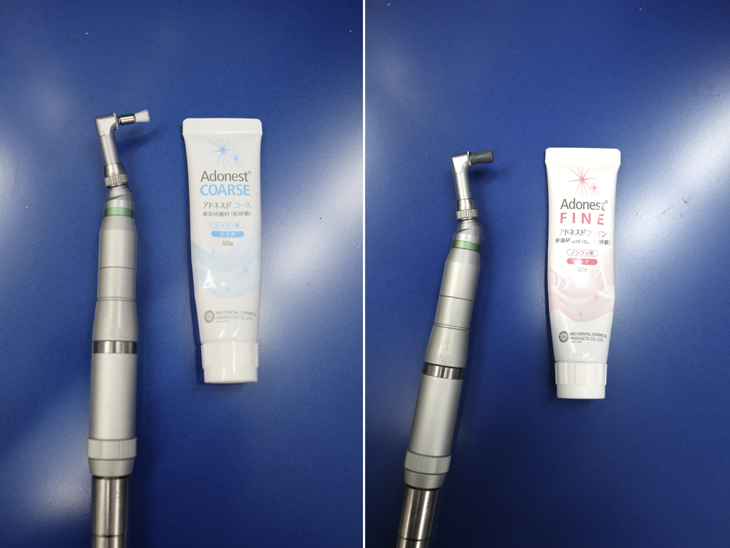 2種類の研磨剤とチップを使用し、丁寧に磨くことで歯の表面を滑らかにする効果があり、再び歯垢が付着しにくくなります。
