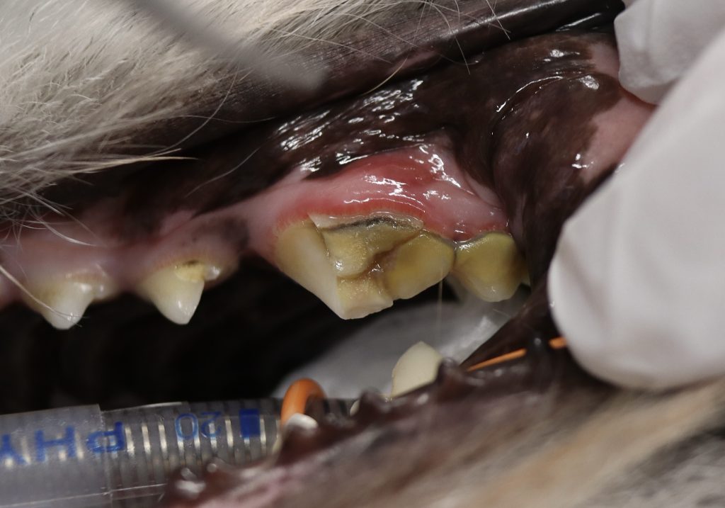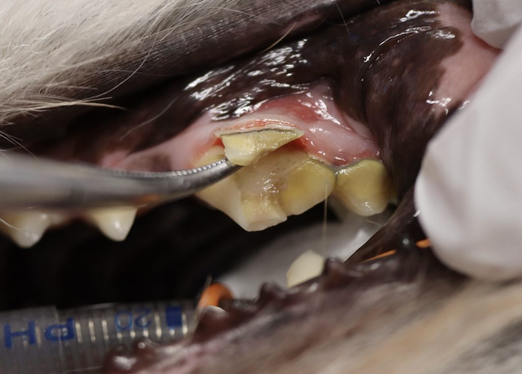 下の写真は第四前臼歯が折れてしまったわんちゃんです。
