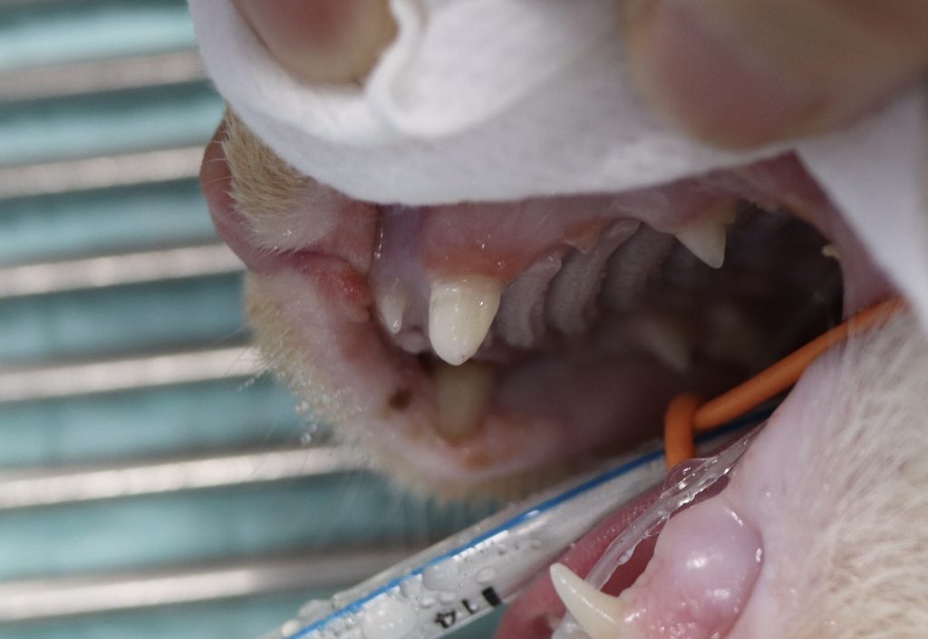 下の写真は犬歯が折れてしまった猫ちゃんです。