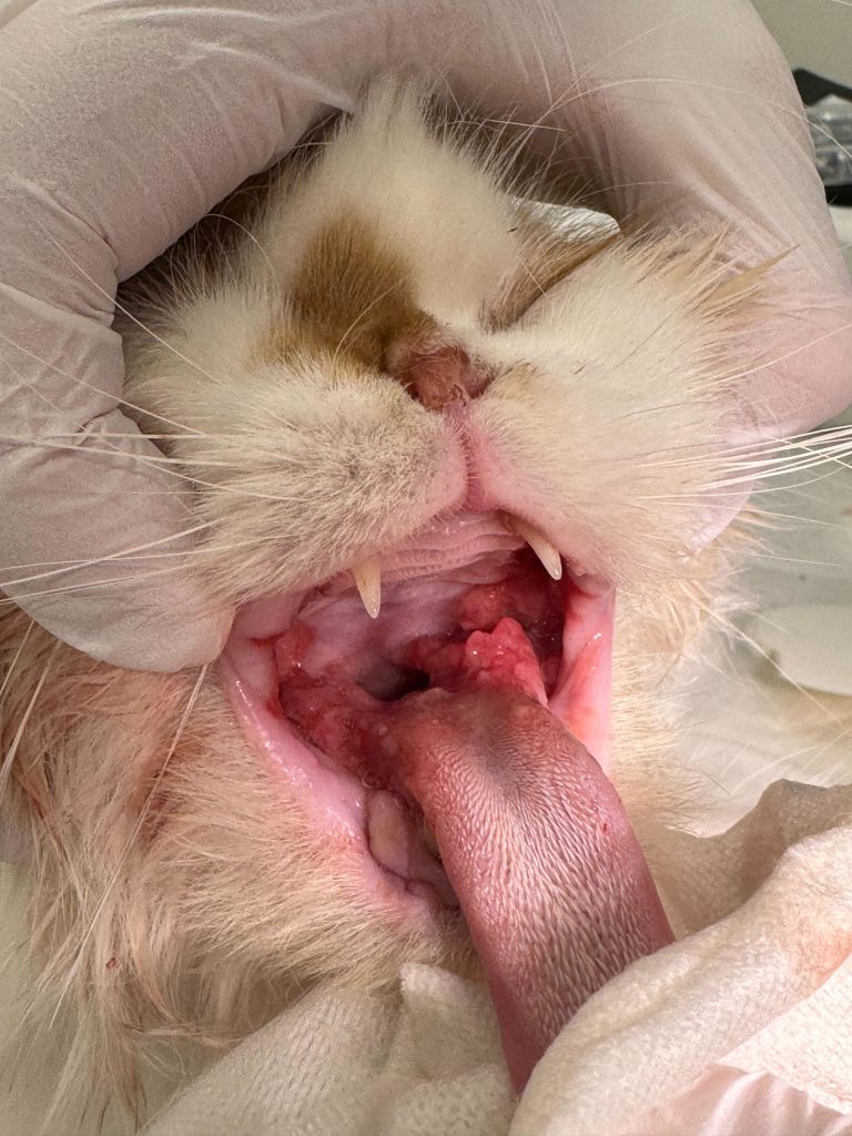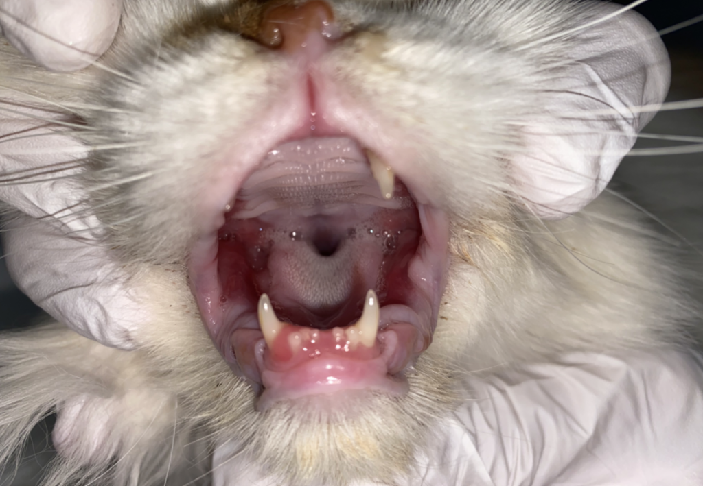 この猫ちゃんは口内炎を患い、流涎・口内痛・食欲低下などの症状がありました。