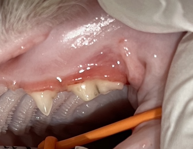 この子は年齢が若く、不妊手術で麻酔をかけるにあたって上顎臼歯の歯冠切除を行いました。