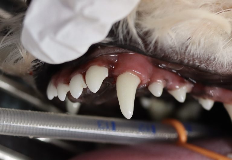 猫の歯肉炎は歯石/歯垢の付着部位に起こります。歯の周囲に限局した赤みや腫れ(炎症)を引き起こし、