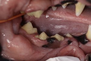 写真の症例の子は軽度歯周病でしたが、将来の歯周疾患・腎疾患を避けるために全身麻酔下での精査及び治療を行いました。