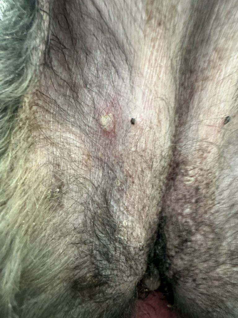 原因菌のほとんどはStaphylococcus pseudointermediusであり、常在菌です。そのため、膿皮症は根本的な基礎疾患が存在し、それによって二次的に発症することが多いと考えられます。