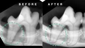 感染が進行すると、全身症状(食欲低下、発熱、元気消失)を伴うことがあり、適切な治療が急務となります。