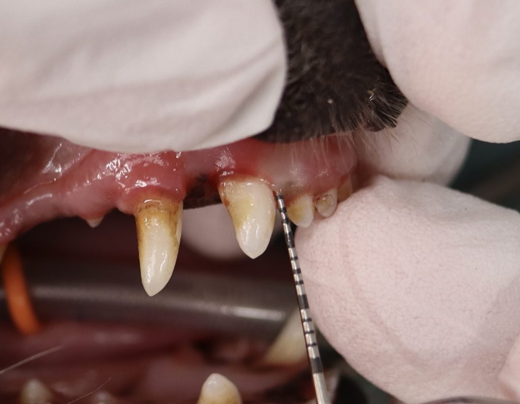 切歯の歯周病は小型犬で非常に多く(詳しくは過去のコラム「小型犬に多い切歯の歯周病」をご参照ください。)、通常歯周組織再生治療の反応は良くないとされています。