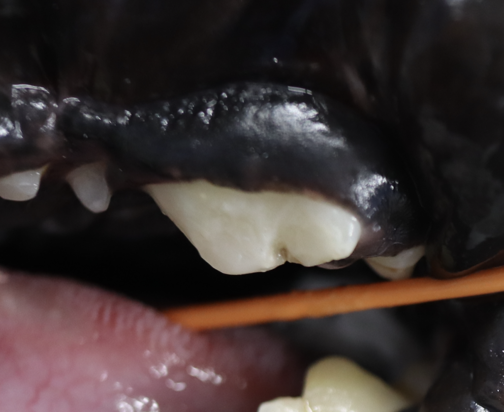 日頃硬いものを噛む習慣があるワンちゃんは第四前臼歯(奥歯)が非常に折れやすいため、毎日の確認がとても大切です。